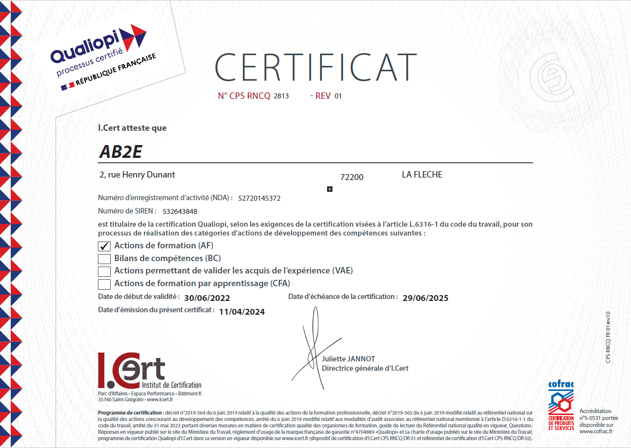 Certificat QUALIOPI Agrandir l'image